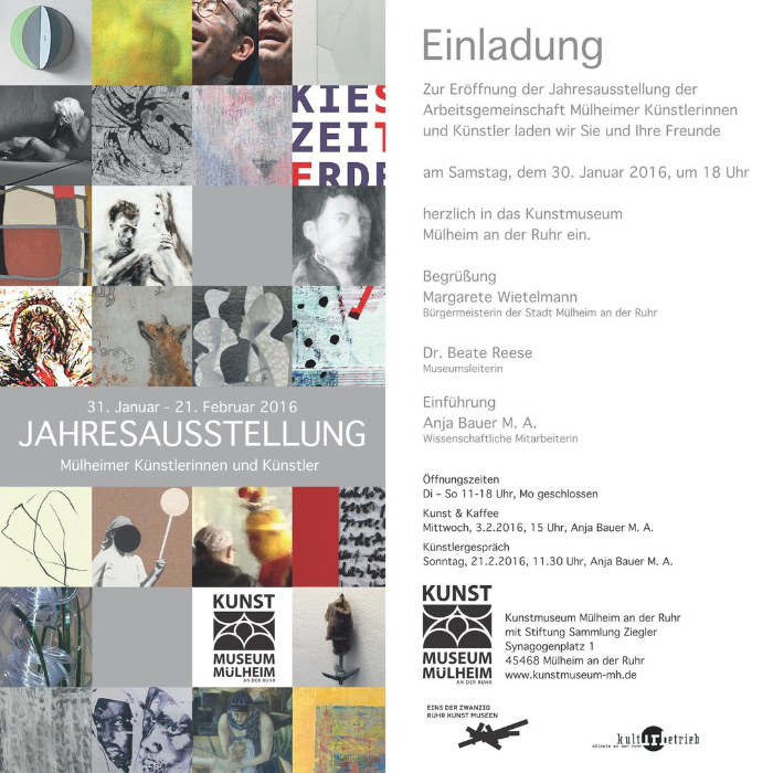 Zur Eröffnung der Ausstellung am Donnerstag, 17.Januar 2019, um 18:30 Uhr in der Städtischen Galerie im Bürgerhaus, Mittelstraße 40, Hilden, lädt das Kulturamt Hilden Sie und Ihre Freunde herzlich ein.